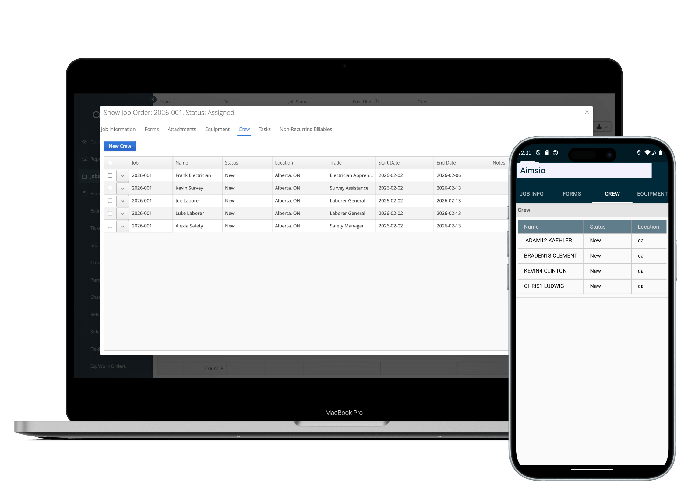 - Easily switch between mobile and desktop: Dedicated “crew” and “equipment” tabs keep your resources organized.